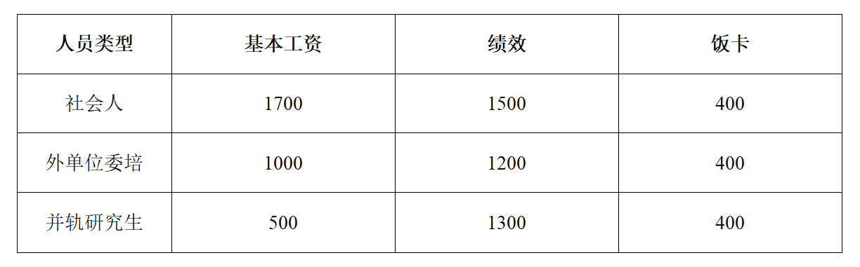 者,发放绩效和饭卡,每增加一学年绩效增加300元。